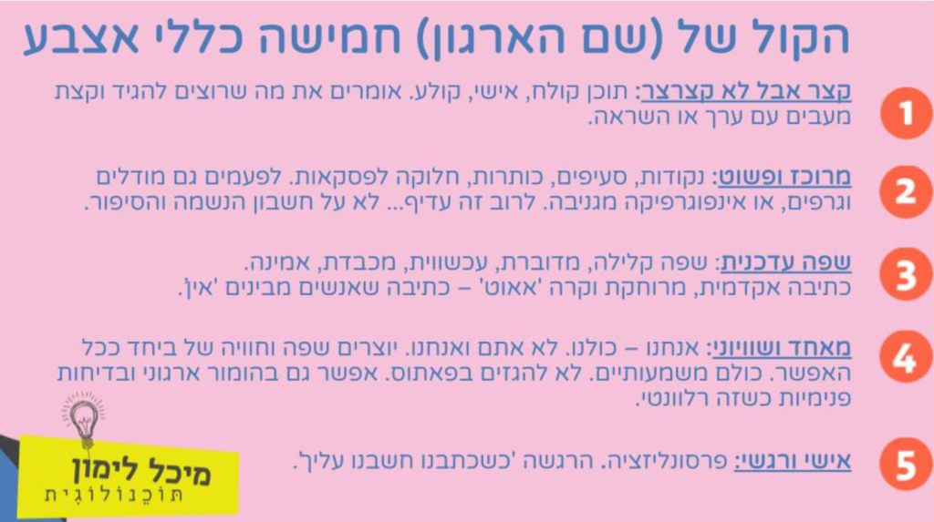 כללי אצבע לאחד הארגונים הציבוריים שאני עובדת איתם: