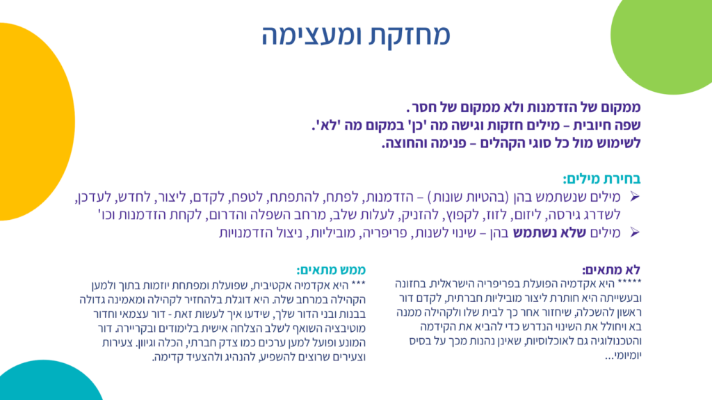 המשלב השפתי יותאם לקהל היעד, אך העקרונות ימשיכו להוביל.